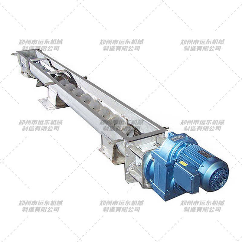 1、傳動(dòng)裝置:采用擺線針輪減速機(jī)或硬齒面軸裝齒輪減速機(jī)。驅(qū)動(dòng)裝置在設(shè)計(jì)時(shí)應(yīng)盡量設(shè)置在物料出口處,使螺旋在運(yùn)行時(shí)處于受拉狀態(tài)。